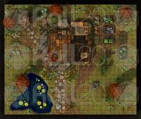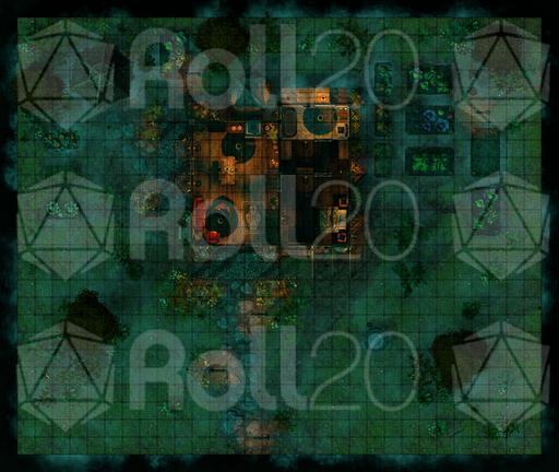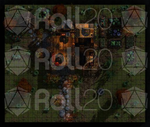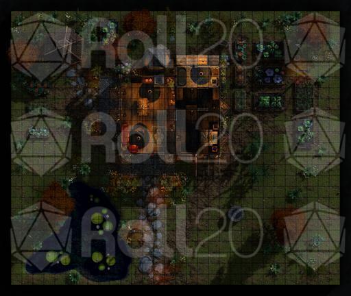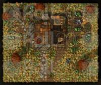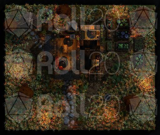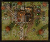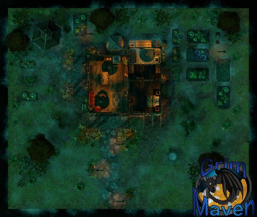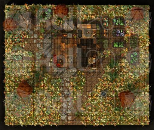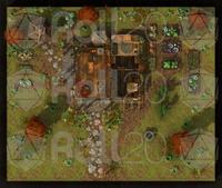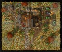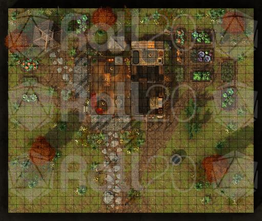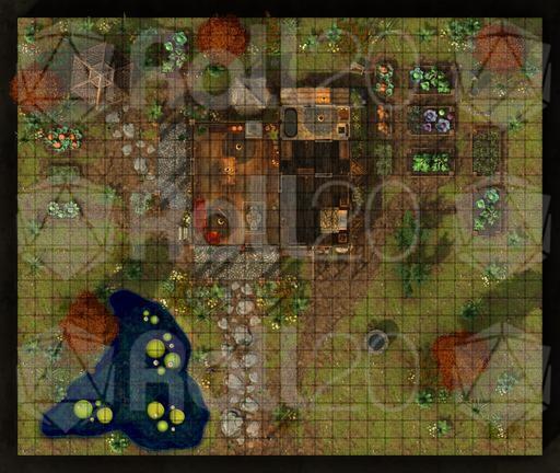 A rooftop view of the farmhouse and surrounding grounds, perfect for overviews, planning, or tactical encounters.