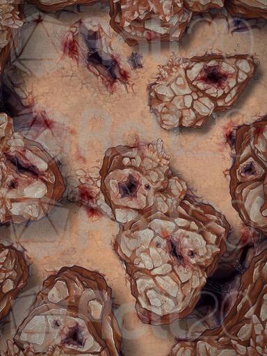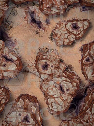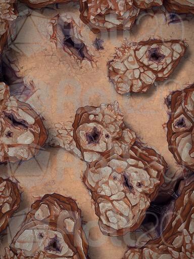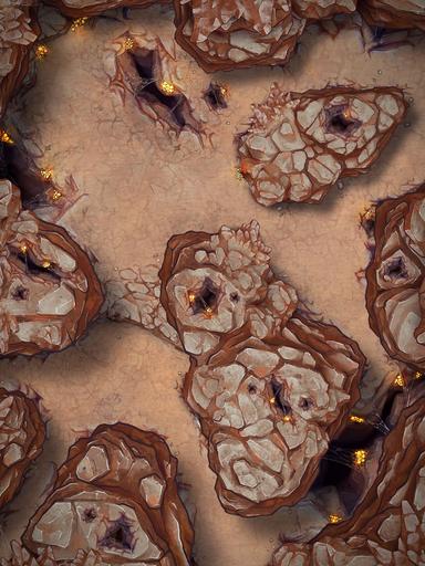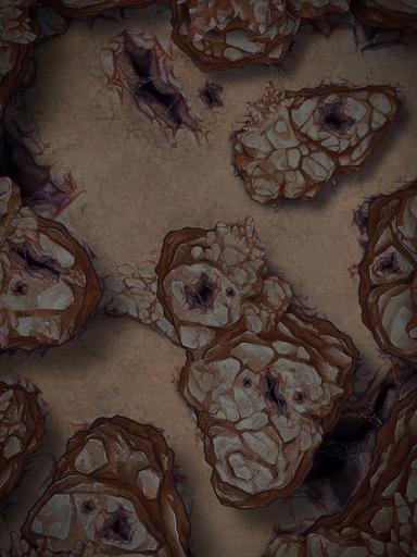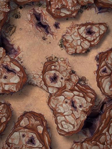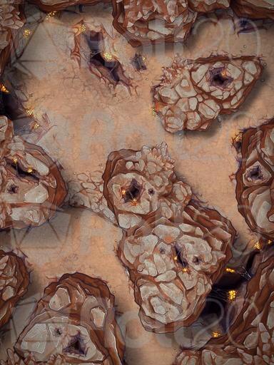 A hideous hive of wretch and ruin, these foul creatures bury themselves deep within the arid rockfaces..