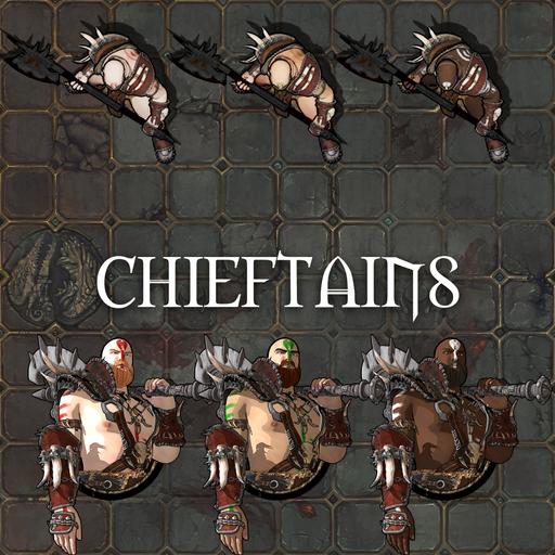The chieftain stands apart from the rest, great axe resting against his shoulder like a mark of office rather than a weapon. When he steps forward, voices drop and even the boldest warriors watch his hands, knowing he doesn’t swing unless it truly matters.