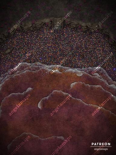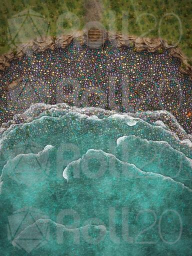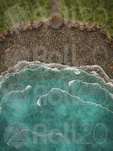 Pebbles, pebbles, glistening in the sun! A lot of people prefer pebble beaches over their sandier counterparts. They say that they’re easier to walk on, as long as you’re wearing footwear, that you can find treasures beneath the rocks, that they look nicer. Those people are wrong, obviously, but with such lovely rocks on display, we can forgive their mistake. Fully animated and available in two versions, one with even more colourful pebbles gracing the shore, and the other with a blood tide washing up against crimson rocks, this map will have your players ready for a landing party!
