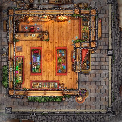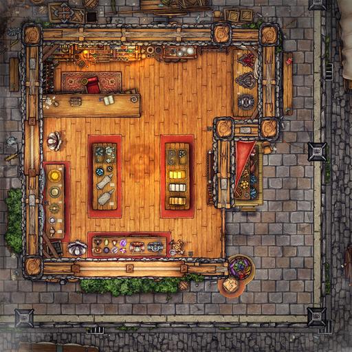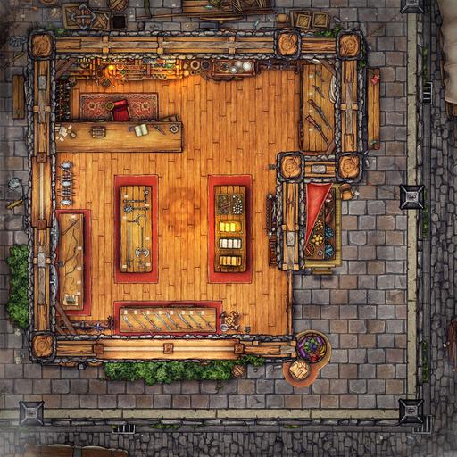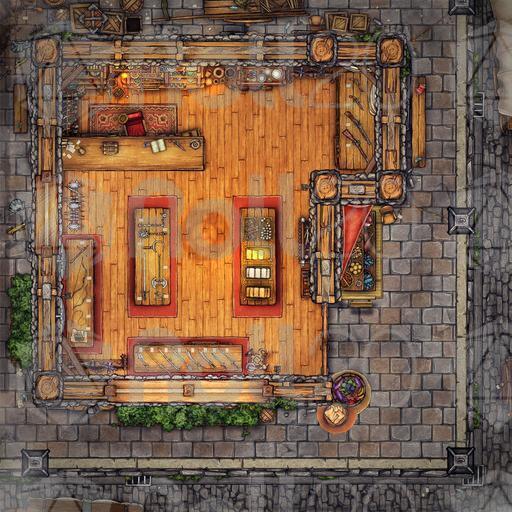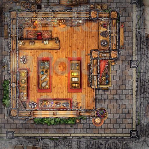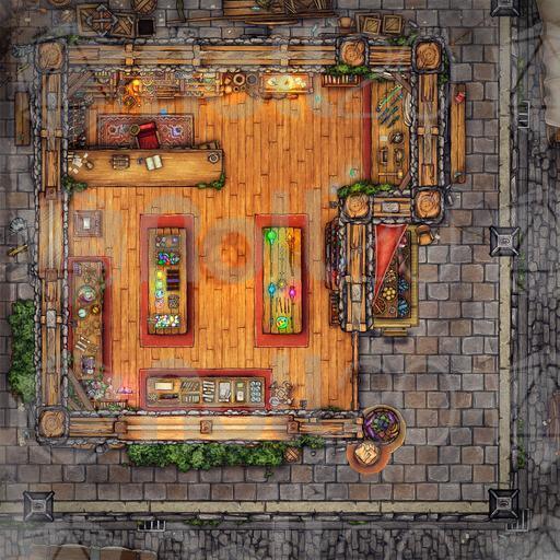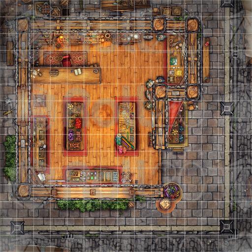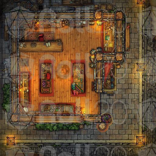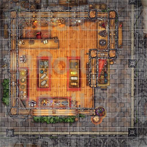 5 highly detailed vibrant General Stores for your convenience, from an Alchemist and a Weaponsmith, this pack is sure to give you plenty to choose from for your party's shopping needs!