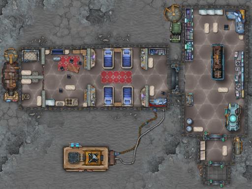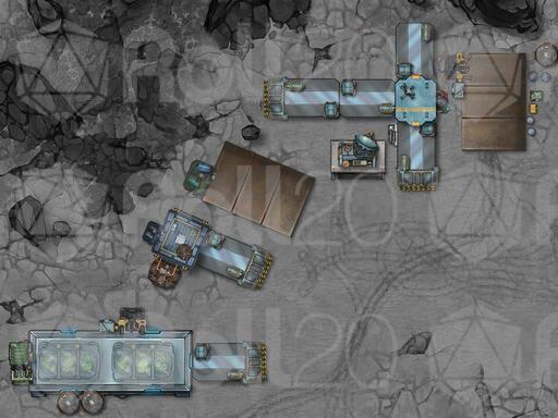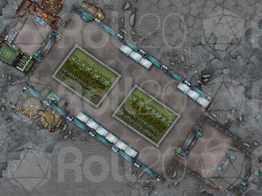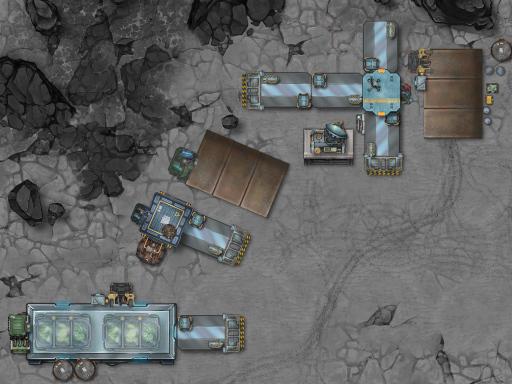 Underground Entrance: Two buildings conceal airlocks to the underground base. An elevator for staff and a vehicular lift for cargo and surface rovers.