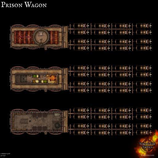 Maybe, your adventurers are posted as guards, while in the hold is locked away some terrible villain, with his minions shackled to the benches, all on their way to justice. Or, maybe the tables have turned and it's your adventurers locked up, left plotting their daring escape. Or, could it be their beloved NPC, Nan Shanagan, or their benefactor, Cooper Dragoon, being hauled off to a terrible fate? Then here you go, for not only is this wagon a vehicle, but it's also a rolling encounter location all its own!