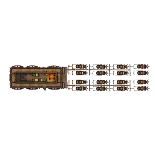 Need to transport some high-profile prisoners? The Prison Wagon is here to deliver! With a top deck crew compartment, a team of 16 oxen (or aurochs to spice things up), and a massive hold, there's plenty of encounter opportunities to be had.