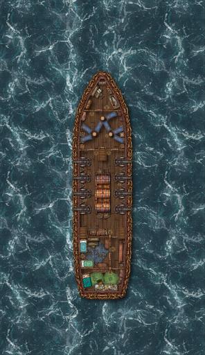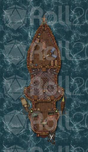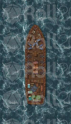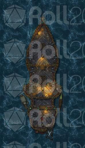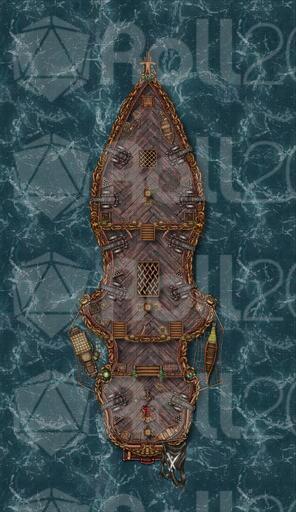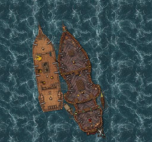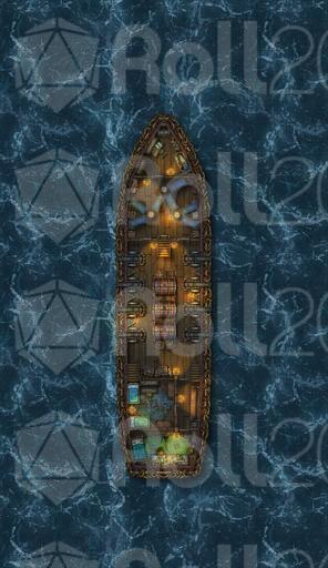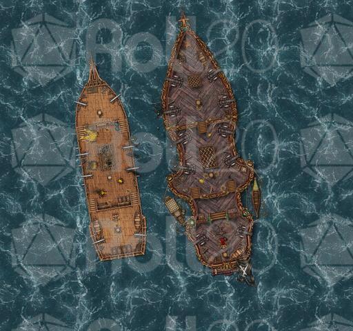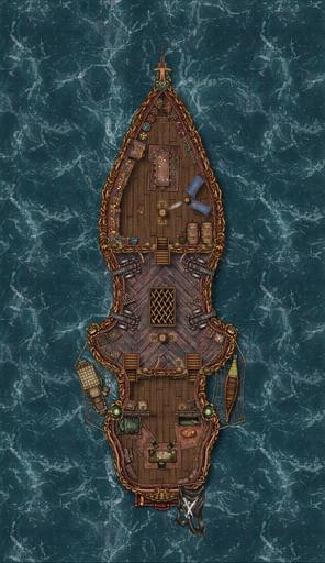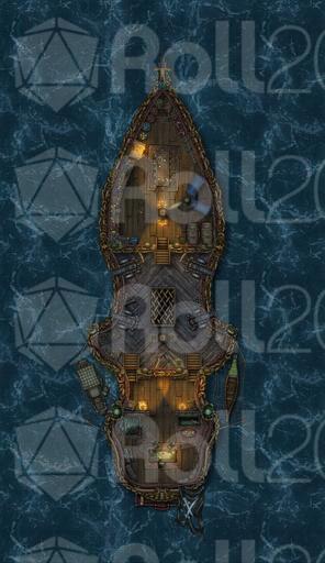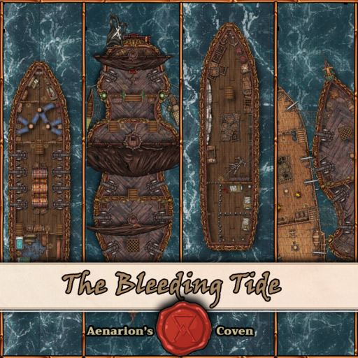Inside this module you will find a set of 5 maps of a pirate ship, the Bleeding Tide, covering from the decks to the lowest level, with night and day variant. In addition to this you will also find 2 variants representing the ship boarding a merchant's ship. For a grand total of 7 maps!