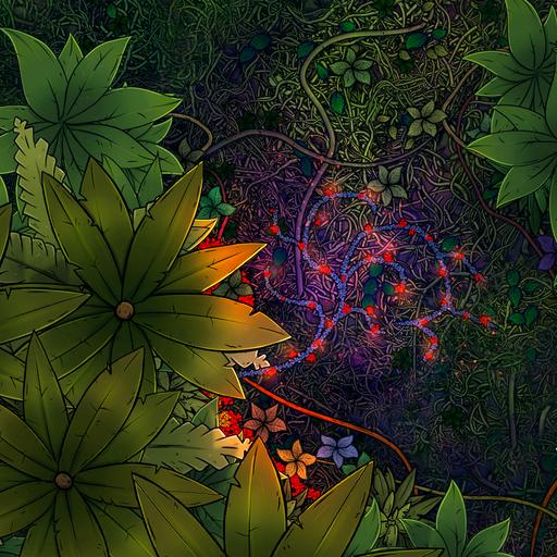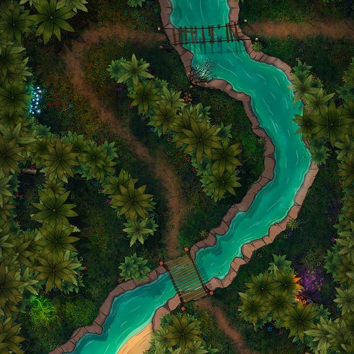 ➤ Yahaura's Heart. [16x22] A jungle dungeon lined with trapped corridors and a flowing river.