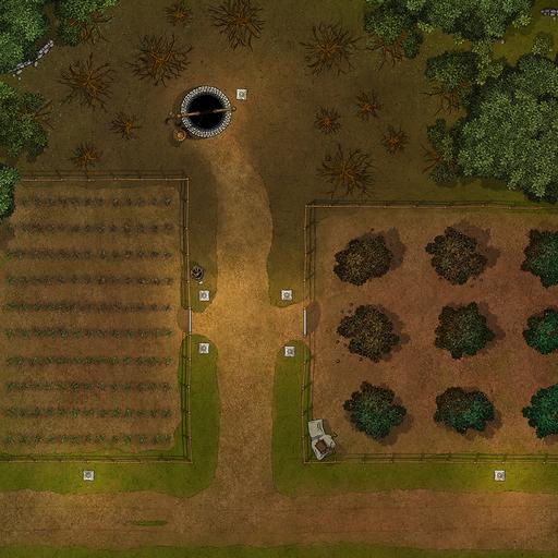 ➤ Rotten Harvest. [30x20] Once-thriving crops are now withering, and the damage seems to be spreading from the well.