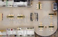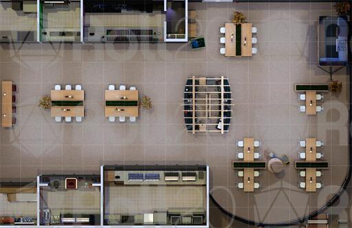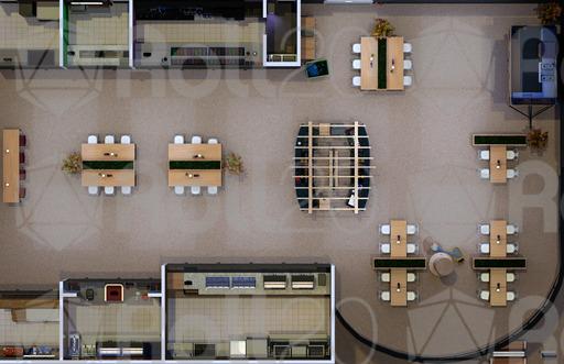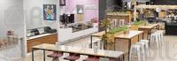 Let's grab something at this modern mall eatery where you can enjoy a meal or a treat. In addition to vendors and tables, there's a wide balcony where one can watch (or spy on) the activity on a lower floor.