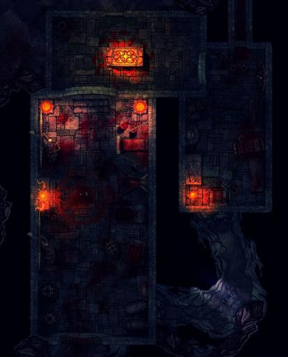 The Wrathbound have claimed and reshaped a subterranean ritual complex formed from natural caverns and forced stonework. The site was chosen for its isolation, its history of bloodshed, and its ability to channel movement inward. Paths narrow, ceilings lower, and routes funnel intruders toward the central ritual chamber. Retreat is possible, but never comfortable.