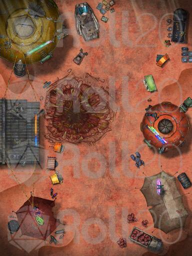 Hey there chum, looking to buy or trade? According to many, commercial exchanges are what hold the galaxy together, so it's no wonder that places where goods can be exchanged, sold, or bartered exist pretty much everywhere that living beings have a chance to travel to. Whether this particular outpost is a decent place where hardworking folk will give your party an honest deal, a wretched hive of scum and villainy, or something in between is up to you! Fully animated and available in two additional variants, one with fewer vendors hawking their goods out in the open, and another where the deathly maw of some subterranean beast has opened up to swallow unwary merchants and customer alike, this map is all set for your every need, be they shopping, run-ins with law enforcement, or high-octane chase scenes!