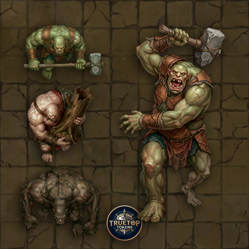 Trolls & Ogres– Token & Full Art Pack includes 25 Trolls & Ogres raider characters, each provided as a VTT-ready token and a matching full-body artwork.