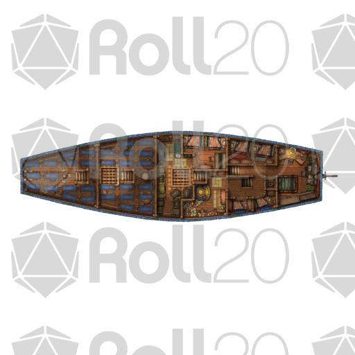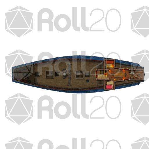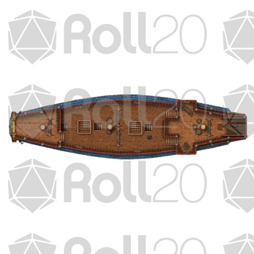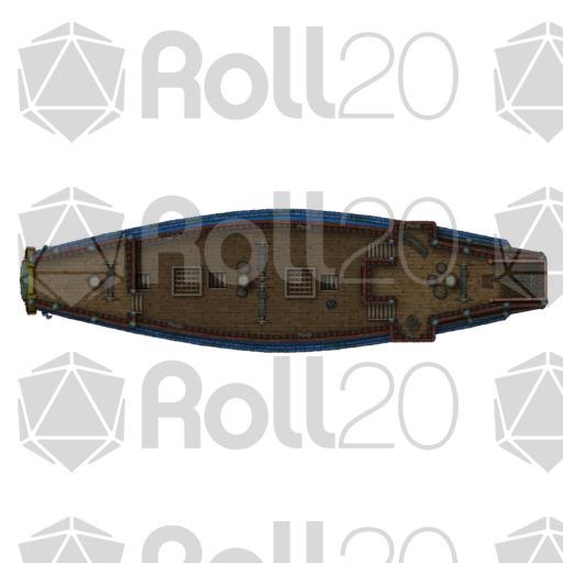 This mid-sized vessel comes with five detailed decks and an overview with rigging, all delivered as png tokens, with day and night variants to optimize play. Included is a bonus ocean backgrounds, with night and day variations.