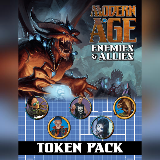 This pack gives you two sets of 72 tokens based on the NPC and monsters found in the Enemies & Allies sourcebook. Set one uses the standard Modern AGE token ring and the second set uses a Threefold themed token ring for a total of 144 tokens.