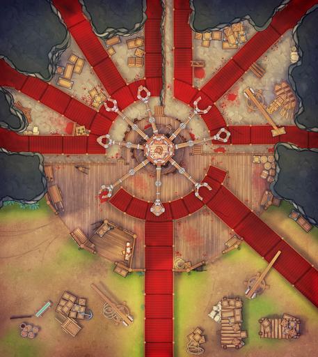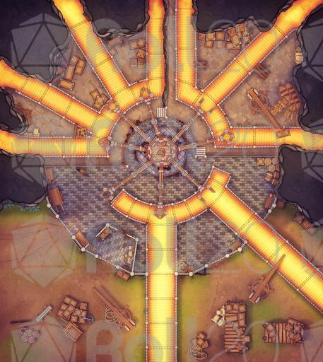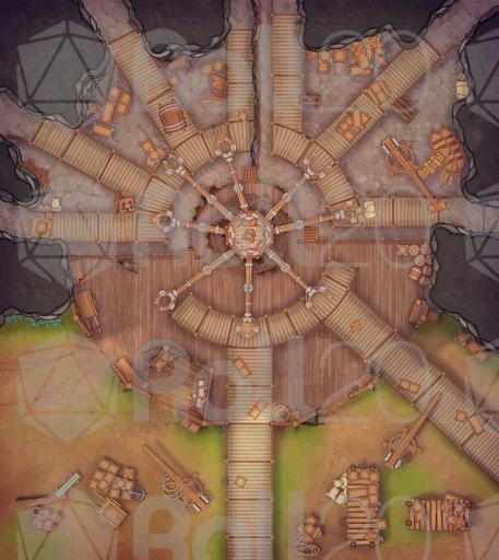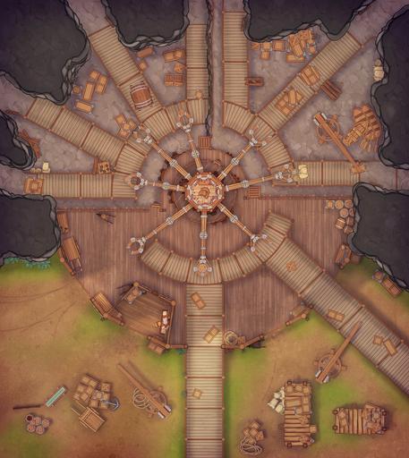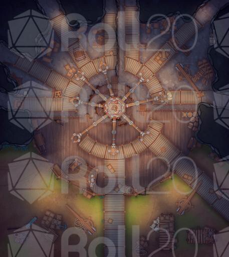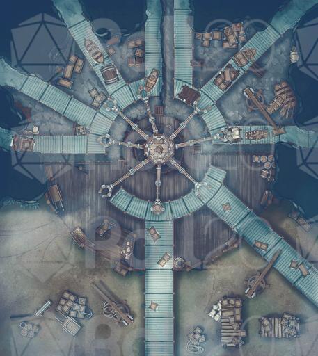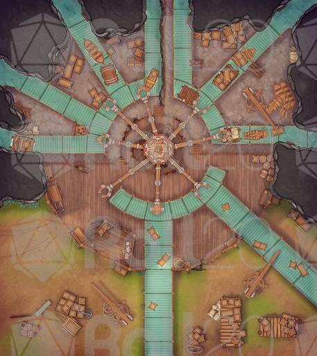 Our very first battlemap ever released was the Wet Foot Tavern, a building that had a basement connected to an aqueduct underground. These aqueducts were part of a complex system of tunnels underground that The Squid, the company that owns them, uses to distribute cargo in the city in a cheaper and faster way. This was the first piece of lore of our world and so here it isThe Squid Warehouse itself!