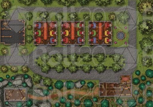 This extra large map features various building for guests at a mansion or manor.