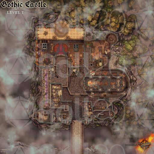 Designed for a fully immersive gothic horror adventure, the Gothic Castle Ruins are filled with twists and turns, long eerie corridors and haunting rooms, details you can use to actualize any monstrous encounter you can conjure up from your nightmares.