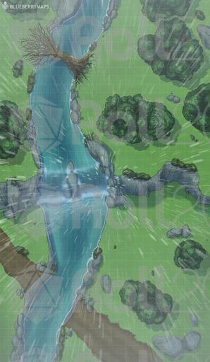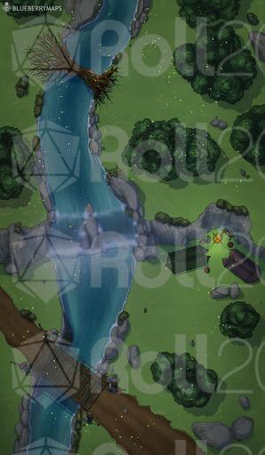 You've arrived to a section of the river with a small waterfall. The waters seem clear and fresh, the trees offer a nice shade. Seems like a good place to set camp for the night... or plan an ambush.