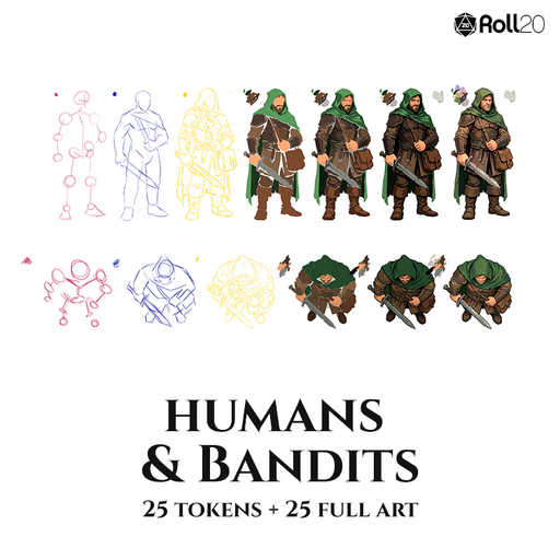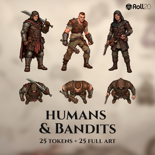 A complete pack of human bandit enemies for fantasy RPGs, designed for immediate use in roadside ambushes, urban skirmishes, caravan raids, and chaotic outlaw encounters.