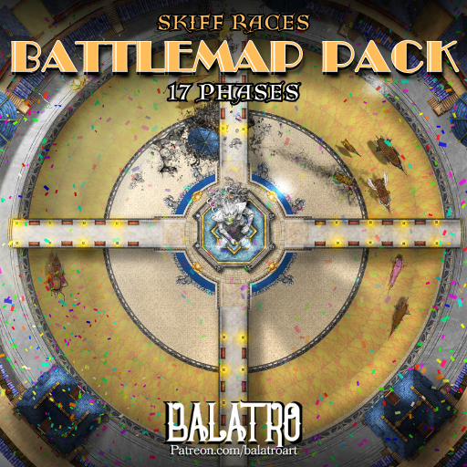 This map is my second set at the flying Casino of Cirrus on High in my campaign setting Crudilex. This time it features one of the main events the casino hosts, a high speed high octane airship race. The entire vibe of which is inspired a lot by pro wrestling with stories playing out between races and pilots being high energy characters and villains playing roles and building relationships for the audience to get behind all leading up to the last big race for the title!