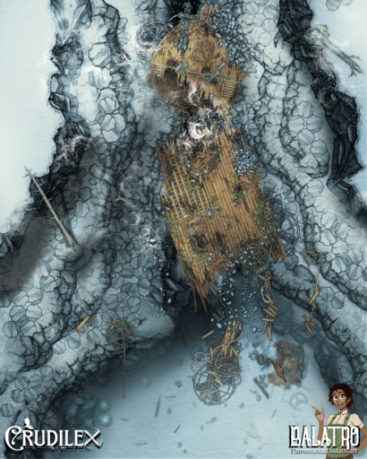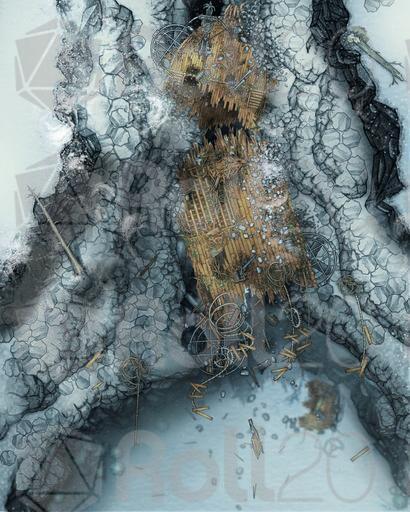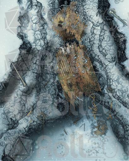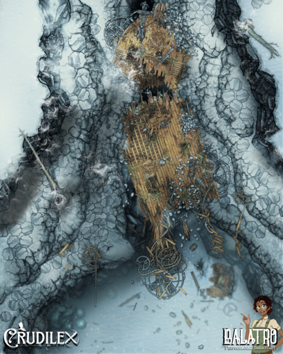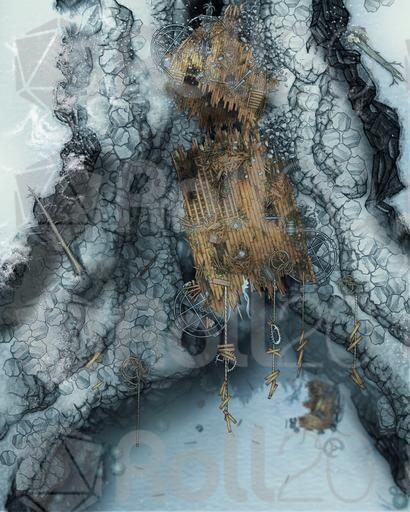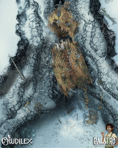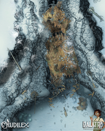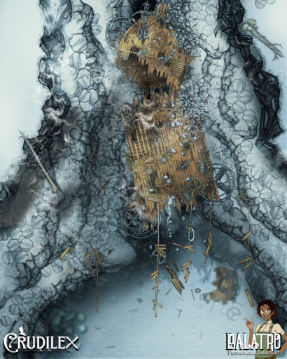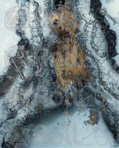 The Affinity was an exceptional airship and it crashed in just as exceptional a wreck. Shattered to splinters hundreds of feet in the air when it tried a daring maneuver through a basalt canyon that was just a bit too narrow. Now it dangles from ropes in the frozen wastes, its treasure and secrets high and unreachable, but always tantalizing those who venture across the tundra.