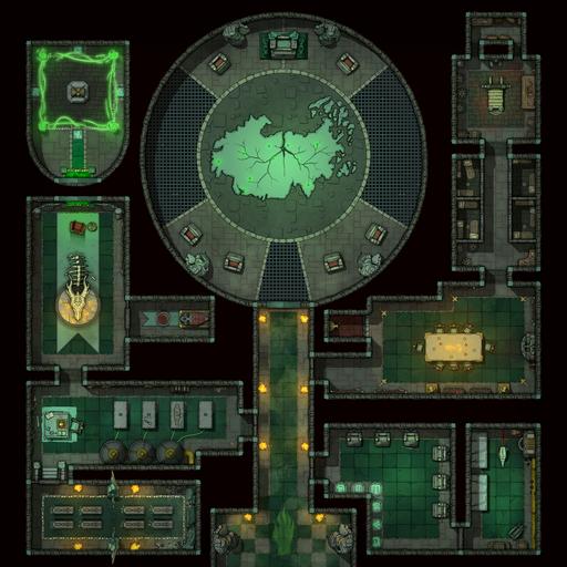 The strategic heart of the Emerald Claw. War room, ritual chambers, prison cells and command halls.