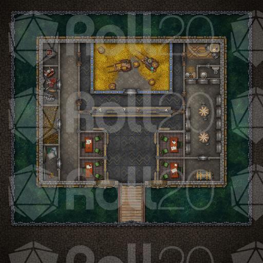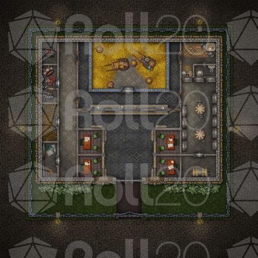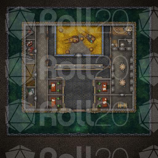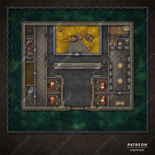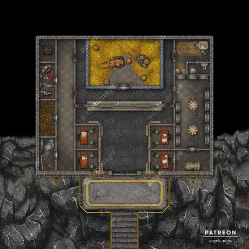 Money makes the world go 'round, that is, until it's stashed away deep inside a vault already overflowing with glittering gold. What better place for a party of adventurers with an excess of liquidities to stash their ill-gotten lucre than this thick-walled dwarven bank, with the highest levels of mundane and arcane protections in place to protect customers' wealth? Unless, of course, your outlaws are instead looking to retrieve some important document or dormant artifact from this reputable establishment's many safety-deposit coffers... Fully animated and available in three variants, this banking establishment embedded into a mountainside for extra safety, or surrounded by a deep moat, with the drawbridge both lowered and raised, this map will have your players lightening their pockets, or lining them up in no time. Shiny!
