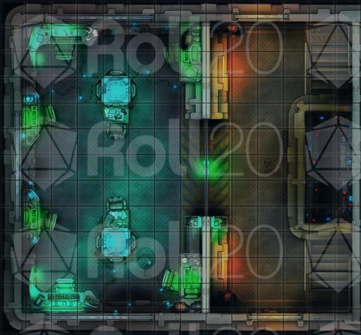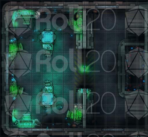 14x13 Communications Center Battle-Map withs Lights OFF with Doors OPEN