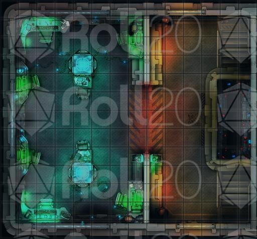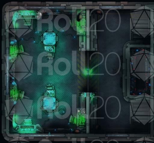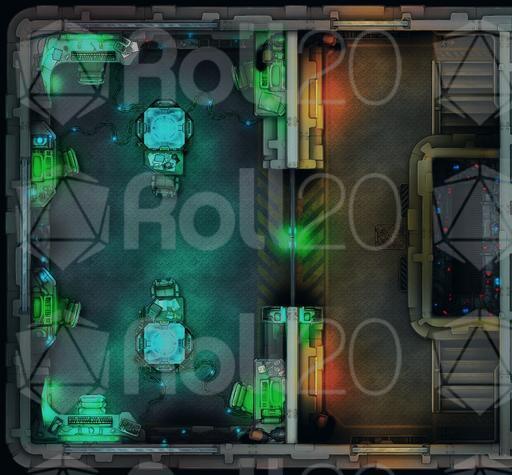 This is a small 14x13 Grid sized Battle-Map to fill your library of possible encounters! This fits perfectly with Our Flood Wall Map-Set as you can find fitting staircase inside that set! This Set contains two versions of the Communications Tower, one with additional corridor lights ON and one with lights OFF, check out the previews for detailed look!