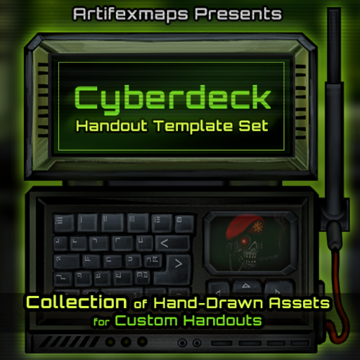Cyberdeck Template Set contains hand-drawn assets and ready templates for you to make your own highly customizable handouts for your narrative needs!