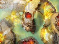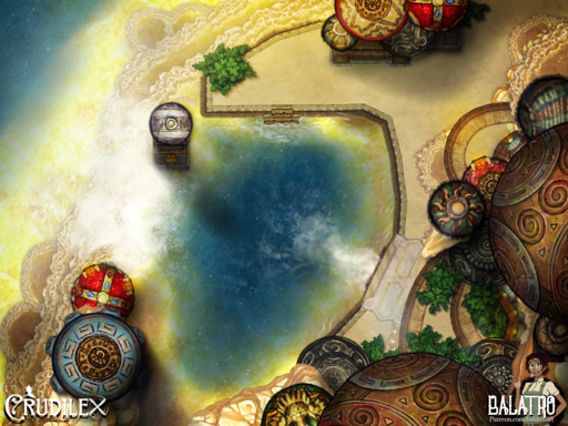 The Saltpool Terraces separate the upper sea from the lower, The great geyser erupts with mineral rich torrents in the upper sea and slowly they flow over the mountain side depositing their minerals and forming countless pools and rivers. The people of the region believe among these sacred pools lie portals, windows into time where one can peer and see how their life might turn out depending on the choices they make. Divining Dowser Wizards make frequent visits to them they say to seek to glimpse their fate, but the public secret is that its really just to the region's best vacation spot.