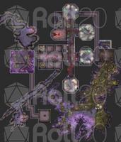 Luminescent fungus, shedding violet light, clings to the walls and ceiling of this wide cavern. The air is damp, chilly, and filled with odors of loam and decay. A layer of earth, mixed with rotting vegetation and the remains of cave animals, covers the floor. Mushrooms and fungi grow on the detritus.