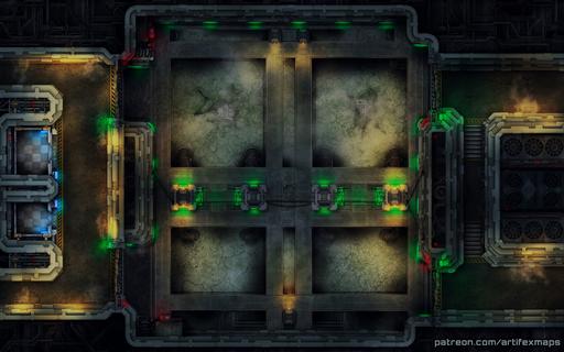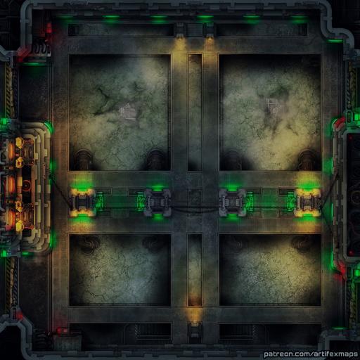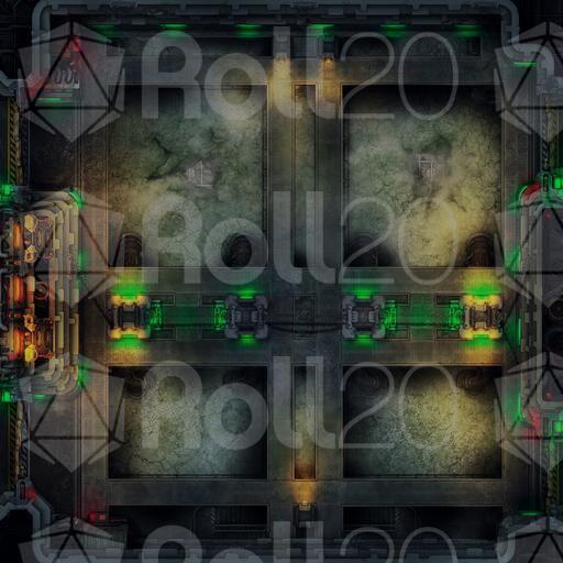 Water Treatment Facility Map-Set Contains our 40x25 Battle-Map with two unique layouts with two stages of lighting for each! Set also contains a Bonus Version for a smaller ''battle-arena'' version with no corridors or elevators, for you who just want an awesome battle arena for your encounter! In the Default Layout, you can find large pools of liquid water, steaming away above the industrial walkways, so watch out those push-back effects! Inside the Alternative-Version, you can find those water-pools frozen over and the mooks making their way through the ice!