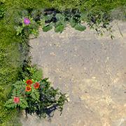 A map tile is an art asset that depicts a 5ft square area of terrain, created by blending photographic source material with hand-drawn artwork. Each map tile is rendered to a scale that depicts each real-world inch as three on-screen pixels. This provides us with a 5ft map grid square that equals 180 pixels in size.