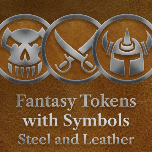 The Fantasy Tokens with Symbols - Steel and Leather is a token set featuring fantasy-style framed tokens. This pack includes 300 pieces of symbol tokens. These tokens can be used in any fantasy or historical setting and are ideal for marking objects, characters, NPCs, monsters, or important points on the map.