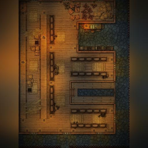Five maps for your next smuggler/criminal based session. A quiet street into an even quieter alleyway and a shady looking bar where criminals can meet. Then there's the warehouse where all their true business takes place.