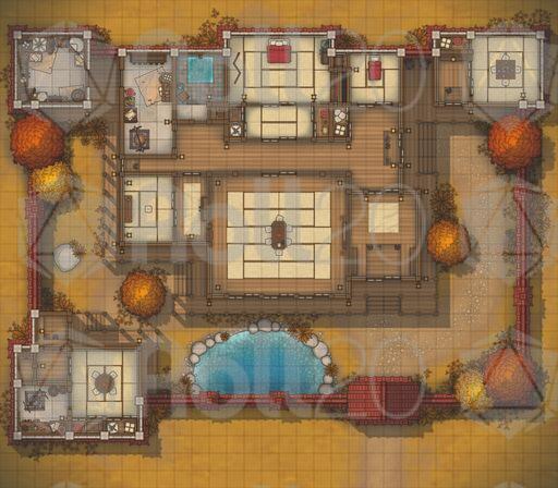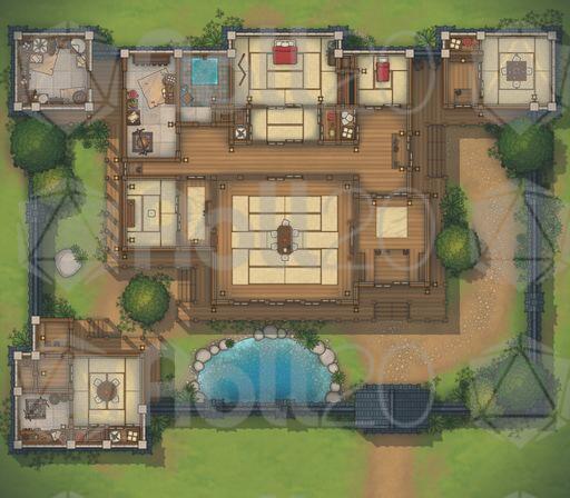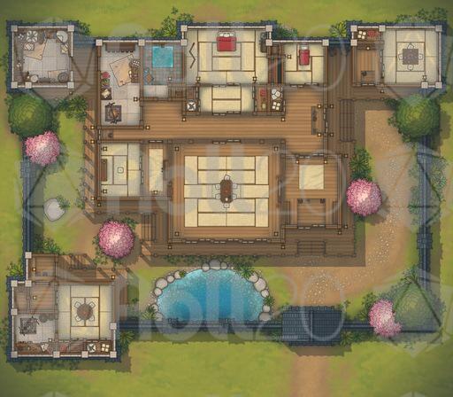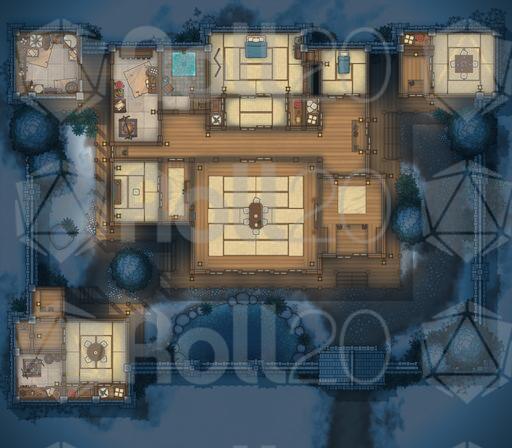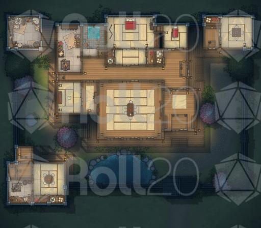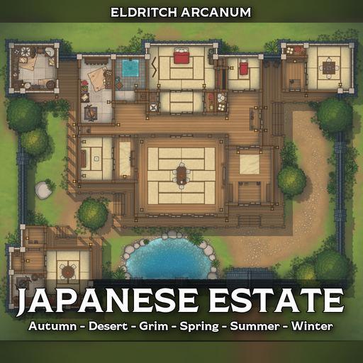 A tranquil walled-home battlemap pack focused on the Japanese Estate, ideal for roleplay-heavy visits, tense negotiations, hidden blades in polite company, and quiet courtyards that become battlegrounds.