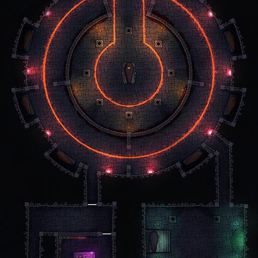 ➤ Vampire Crypt. [20x30] An ominous cellar with coffins and a decoy central coffin, hiding the Master Vampire’s true resting place.
