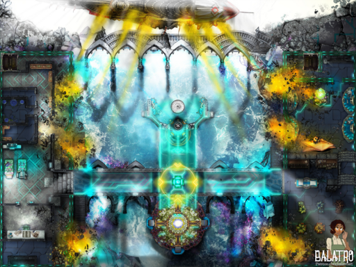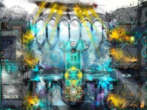 This map draws inspiration from Final Fantasy 14, envisioning a Galarian airship bombing a cavern that houses a late Allagan rebel research facility. even a little AOE indicator easter egg for the keen eyed players looking to dodge some airship fire.
