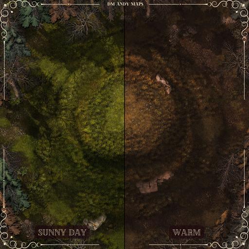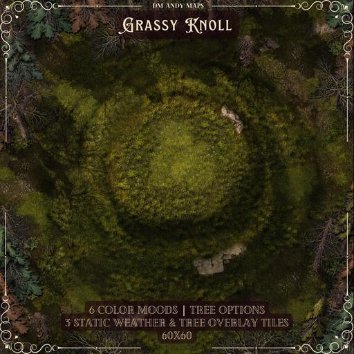 Hi everyone, and welcome to my Grassy Knoll map release! This map features an outdoor encounter location with a large, grassy knoll nestled in the center of a pine forest.