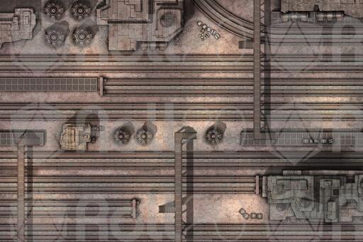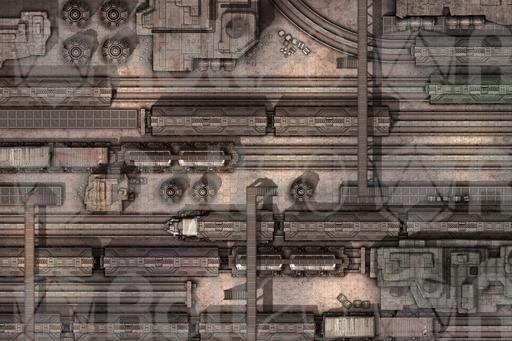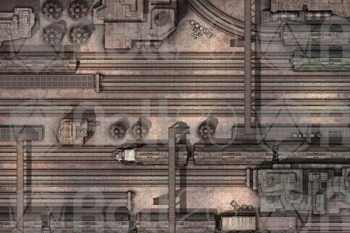 Contents: A set of 60x40 battlemaps depicting a sci-fi or modern railyard or marshalling yard. Includes busy, less busy and empty versions.
