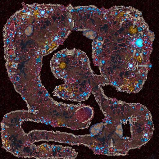 Alien Hive Second Level: The darkest horrors lurk here. Exotic atmospheres with glowing lights fill the air and the floors are covered with a black fluid and gently writhing tentacles. Find the control nodes and burn the place to the ground!