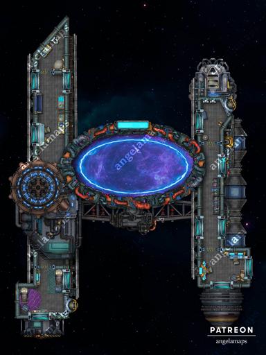 Constructed by ancient alien entities and later repurposed, or the wondrous output of a star-spanning galactic empire, warp gates are the key to travelling across the galaxy, and possibly beyond. No-one ever thinks to visit, though, always just passing by! A wondrous cross-section of what a galactic lighthouse might be, with all the amenities required to sustain a small maintenance crew, this map is animated in multiple variants, featuring the gate turned off, on, and in a grittier, more run-down state, this star gate will have you asking after O'Neill, Jackson, or Carter before long!