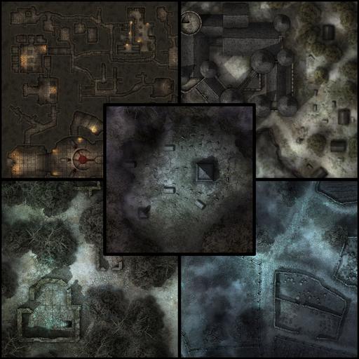 Contents: A set of 15 battlemaps inspired by the dreadful locations of Ravenloft. The set includes mist-filled ruins, dark forests, vampire catacombs, castles, creepy clearings and more!
