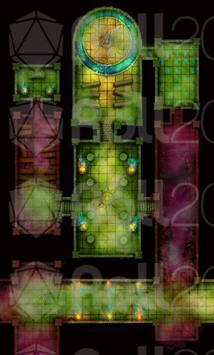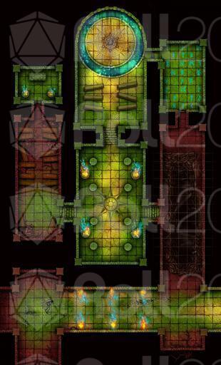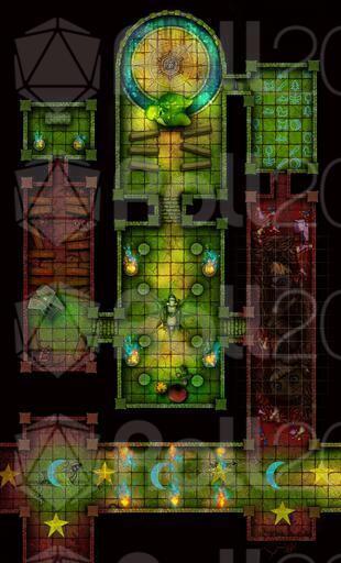 Red energy began to break through into the temple, damaging parts of it, while the yellow mechanisms lost control of the system. The green foundation still holds the complex together, but the fractures of imbalance grow more visible.