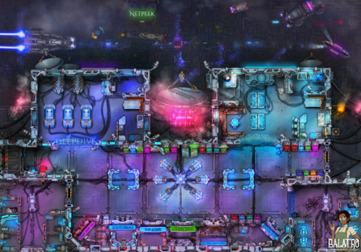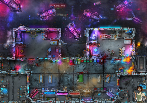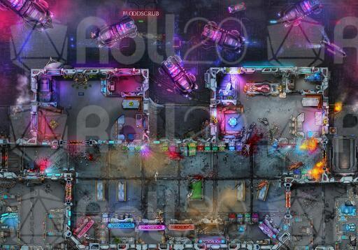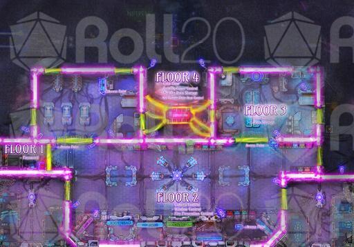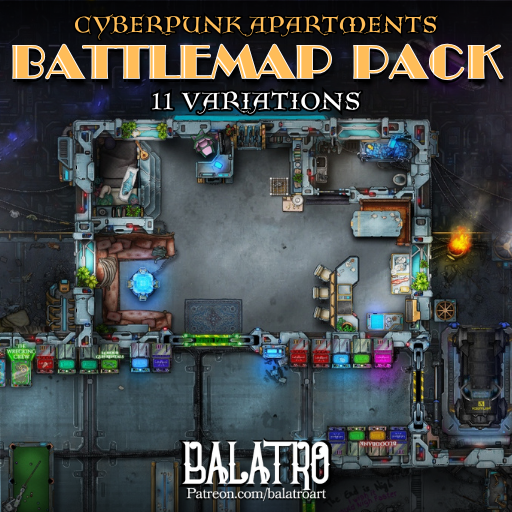 Cyberpunk Apartments! A battlemap set on the 1203 floor of a massive residential mega structure. Containing bodegas, Night clubs, Hacker Lairs, and Drug dens! Everything you need towering above the city below. Never go outside again!