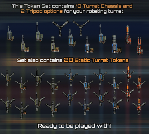 -20 Static Security Turret Tokens Ready Made Tokens from Assets in this Set to get gaming right away!