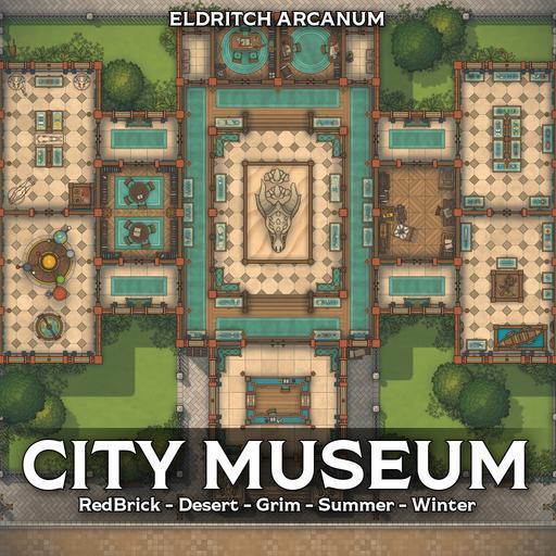 A city interior battlemap pack focused on the City Museum, ideal for downtime scenes, research sessions, suspicious late-night visits, or a heist when the exhibits are worth more than the tickets.