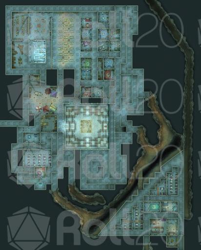 A soft blue light glows from the ore removing the need for torches. Plumbing pipes run into rooms from every which direction and the sounds of a banquet can be heard.