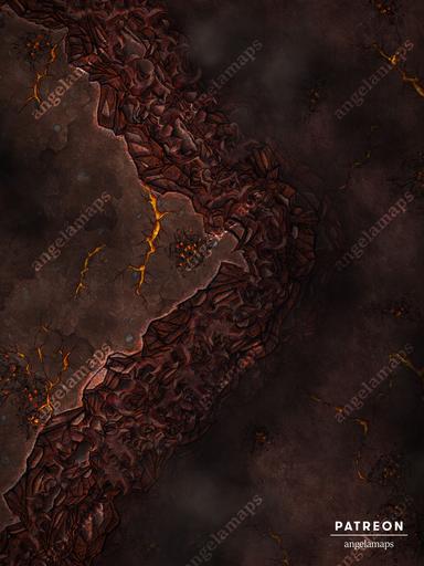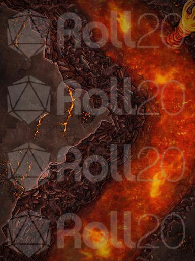 It'll be a cold day in hell before this lava river freezes over, possibly literally. Has your party upset some irritable fiends? Have they been outrunning them so far, but the fates aren't in their favour? Or perhaps they're just out to destroy a simple golden ring. Either way, now you can back them up to the edge of this cliff, from which there is little escape save for the roiling fire below! Fully animated and available in two variants, with an empty void replacing the lava flow and with the landscape having fully frozen over, this map's sheer cliff will soon have their hands sweaty, mom's spaghetti!