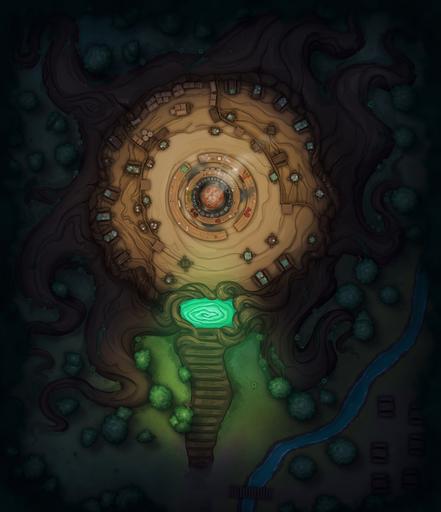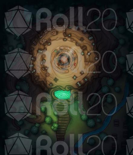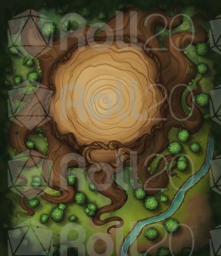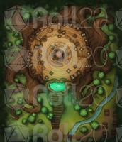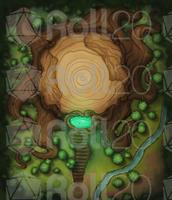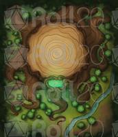A dirt path leads to stairs carved in one of the roots and, after it, a magical portal embedded in a tree knot. A picnic area next to the tree confirms your location. You are in one of the many entrances of the Hag's Pot!